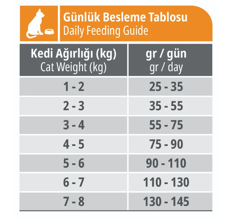 برای گربههای بالغ (معمولاً ۱ سال به بالا). برای بچهگربه و سالمند از فرمولاسیونهای همان رده سنی استفاده کنید.