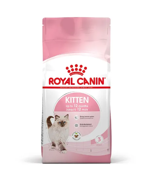 غذای خشک Royal Canin Kitten برای مرحلهی دوم رشد بچهگربهها از ۴ تا ۱۲ ماهگی فرموله شده؛ با پروتئین ۳۴٪، چربی ۱۶٪، کلسیم ~۰.۹۳٪ و فسفر ~۰.۷۵٪ تا از رشد استخوان و عضله، بلوغ ایمنی و هضم بهینه پشتیبانی کند.